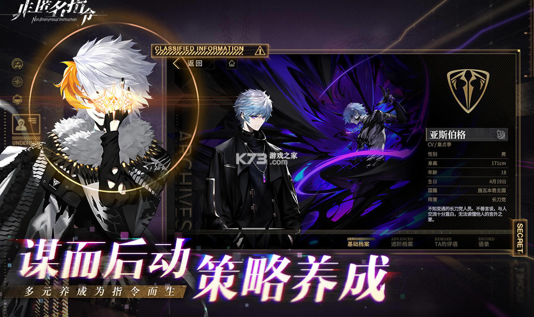 《非匿名指令》讲述的是科幻的都市世界,在这个繁荣的世界中暗藏这神秘的故事,进入到精神的空间中你将与各种迥异的角色来邂逅,做出最关键的游戏抉择,成为同伴不断的培养和战斗,成为最熟悉的同伴,创造可能性的搭配。
