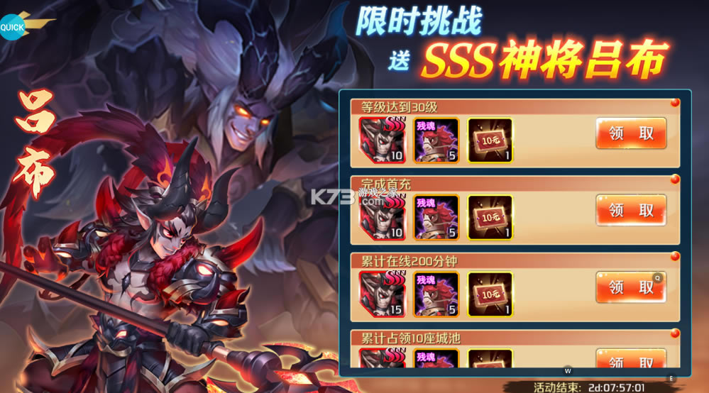 ★限时挑战,送极品英雄SSS吕布+赤兔战马