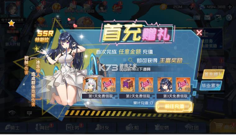 新手礼包:钻石*20000、F币*400万、高级构建图谱*10