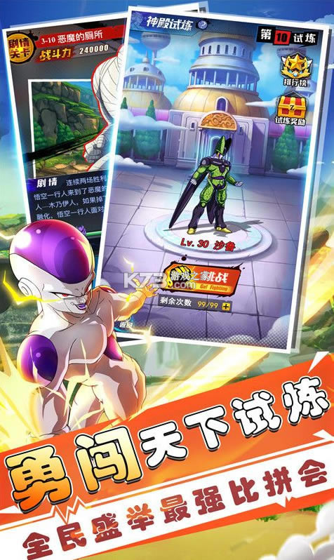 9.尖端的游戏引擎高度还原众多龙珠的经典场景,各种战役等你演绎,召唤伙伴并肩作战。
