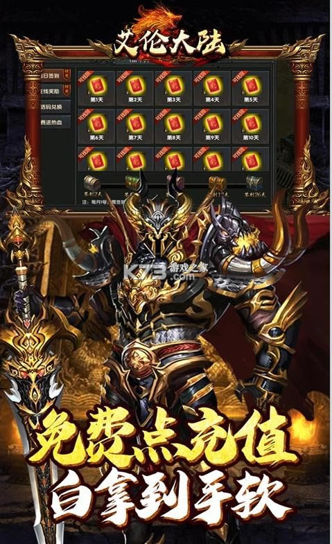 新手礼包:元宝*10W,强化石*50,精炼石*30