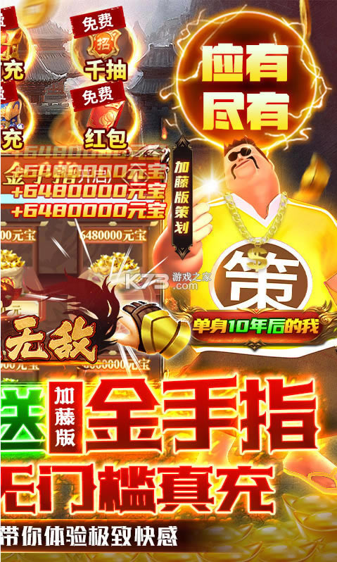 ★首充即返三倍,开局送策划金手指,限时神权GM,千万元宝,千万铜钱,VIP10,VIP礼包免费领。