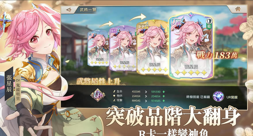 想成为你的手下,强大是必然的,所有武将都可突破到最强品阶UR,R卡也能被你打造成真正的神角,拥有不输任何人的战斗力。除了强更要帅!日本美术大师监制,连R卡都精美无比,你的手下各个超高颜值!