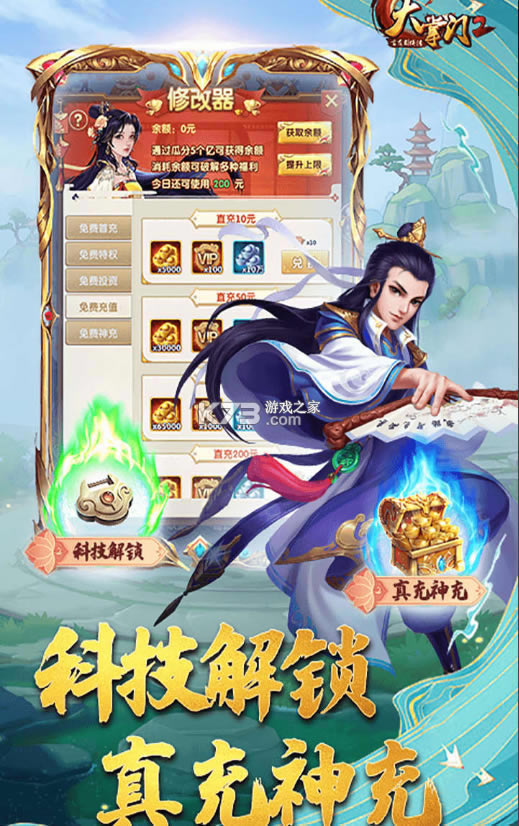 《大掌门2》化身为一代掌门,解锁修改器神充和特权卡,通过目标来获得对应的充值额度,正版授权匡扶武林,清新唯美精致而又细腻,带来极致的游戏体验感,海量神兵任你来挑选,超多热血全面开放,全天活动多,领取丰富道具奖励。