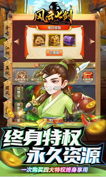 ★【版本专属】:专享终身特权:一次购买,终身享用。仗剑令:BUG特权,免费每日领取进阶礼包!侠客令:终极特权!无限觉醒突破必备!英雄令:究极特权!无限进阶必备!盟主令:至尊特权!无限紫金碎片和资源!