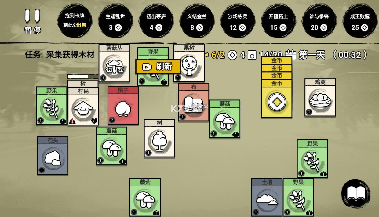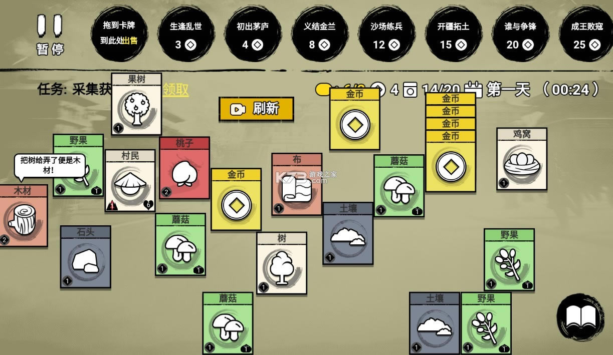集市(翻倍出售):1砖块 + 1木板 + 3硬币 + 1村民