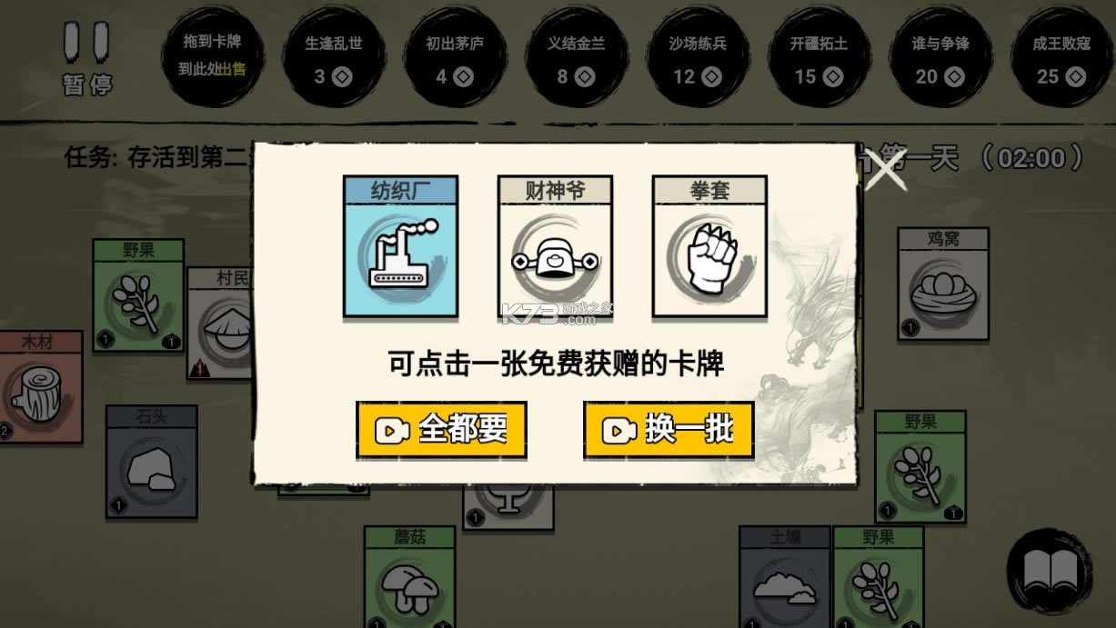 棚屋(卡牌容量+4):1木材 + 1石头 + 1木棍 + 1村民