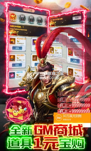 2、跟着任务走,一边闯关一边领福利,每天签到豪礼送不停!装备,武将,现金卡免费送!白嫖仙玉免费激活GM商城,商城内所有道具仅需1元宝购买!