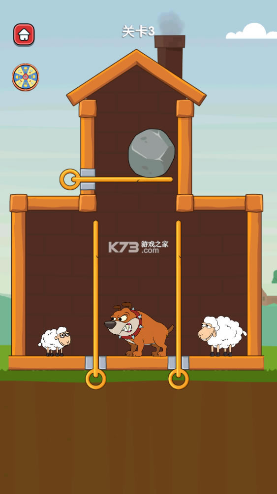 游戏中玩家需要按照正确的顺序拉开针解开机关进行解谜,成功解救被困的绵羊,玩法简单,关卡很多难度不断升级。