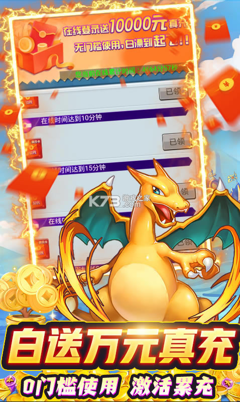 ★在线登陆0氪10000元真充,激活游戏内累充,体验土豪般快乐!!!