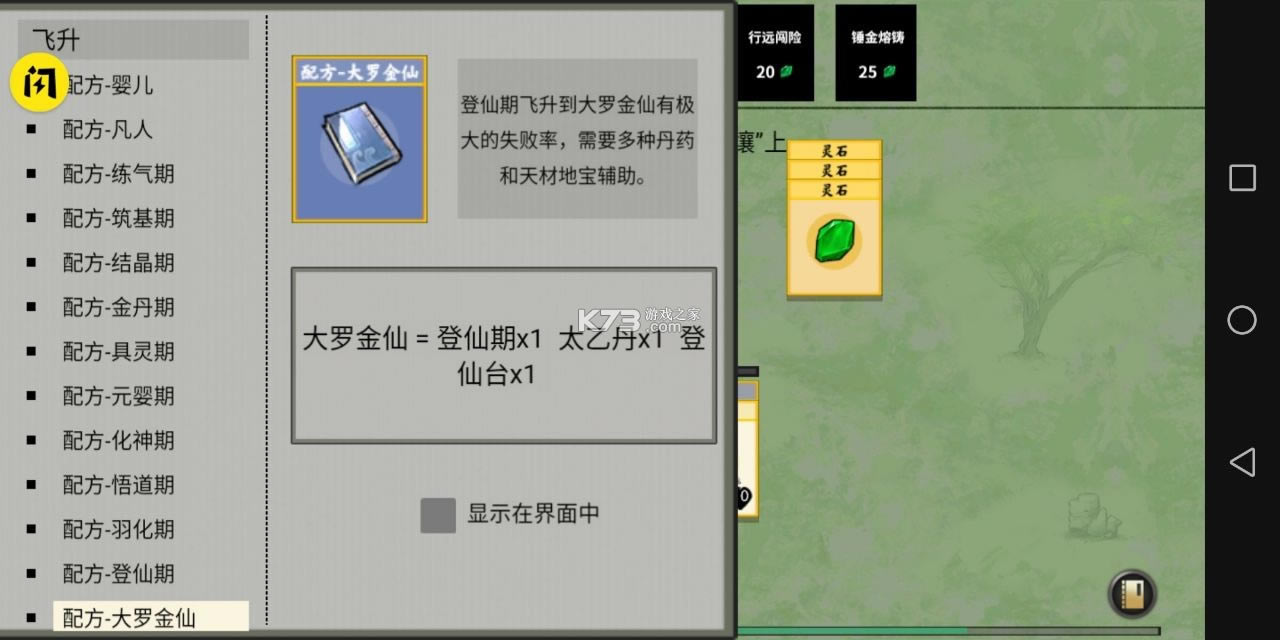 大罗金仙:登仙期×1太乙丹×1登仙台×1