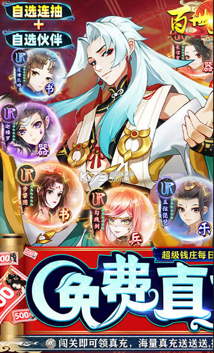 《百世文华录》创角就领SSS伙伴,宝器自选更有海量的黄金铜币,每日直充超多利息来返还,豪华的奖励领不停,随意的挑选,送福卡超级翻翻翻,活跃就送汉白玉,在线随意的挑选,送福卡每日利息返还,闯关即可来送,福利无限。