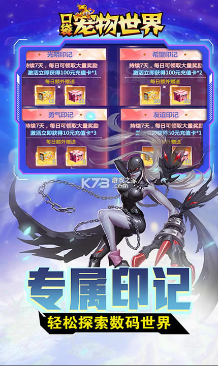 《口袋宠物世界》通过副本领取真充卡,登录就送,资源免费拿只要敢玩就敢送,神秘满兽数码兽宝箱福利超级多,卡牌养成拥有全新的故事剧情,和小伙伴们一起穿越到数码的世界中,守护世界的和平。