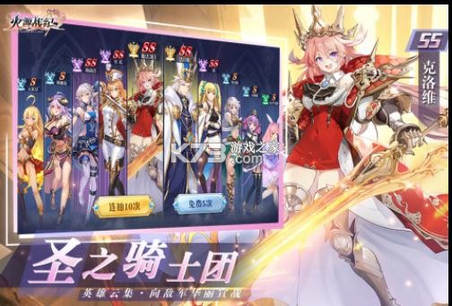玩家在游戏中扮演主角,可通过组建团队参与航海、试炼之塔、领地巡逻、日常副本等玩法获取各种材料和资源,用以提升个人及骑士团英雄的属性和战斗力。游戏中设有100个英雄角色,通过搭配不同的英雄组建队伍可激活不同的羁绊属性,游戏具有良好的策略性和娱乐性。奇谋惊险的四国争霸,热血澎湃的公会乱斗,性格各异的强力英雄,丰富有趣的社交玩法......《火源战纪》为你带来一场恢弘壮阔的奇幻史诗!