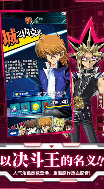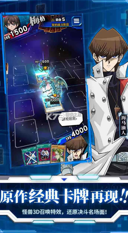 游戏王决斗链接作为一款好玩的漫改手游,全明星阵容出场:游戏、海马、城之内、孔雀舞等!适合新手的直观操作方式!同时兼具满足“游戏王”老手的游戏深度!