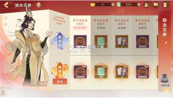 在活动期间,各位玩家“使君”累计活跃度达到要求后不仅可领取每日活跃奖励,还可获得【勋业宝册】中相赠的好礼!