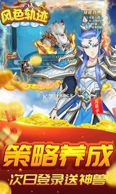 《风色轨迹》全新自动的战斗,上线即可送充值卡,直接升级贵族3,超多萌宠伴游世界,全新自动化的战斗,上百角色多变的形象,独特的养成玩法,各种套装应用尽有,助你战力飙升,玩法应有尽有,战力飙升,完成各种任务。