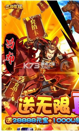 《三国荣耀-无限送真充》游戏以中国古典名著《三国演义》为背景,讲述在三国的乱世中,玩家可扮演主公的角色,招募三国时期的各种名将,来实现三国统一的梦想。游戏拥有招募武将、合击、化身等战斗培养元素,还引入竞技场、抢矿、冠军赛等PVP玩法。魏蜀吴群各具特色,相生相克;三国著名武将鼎力相助。