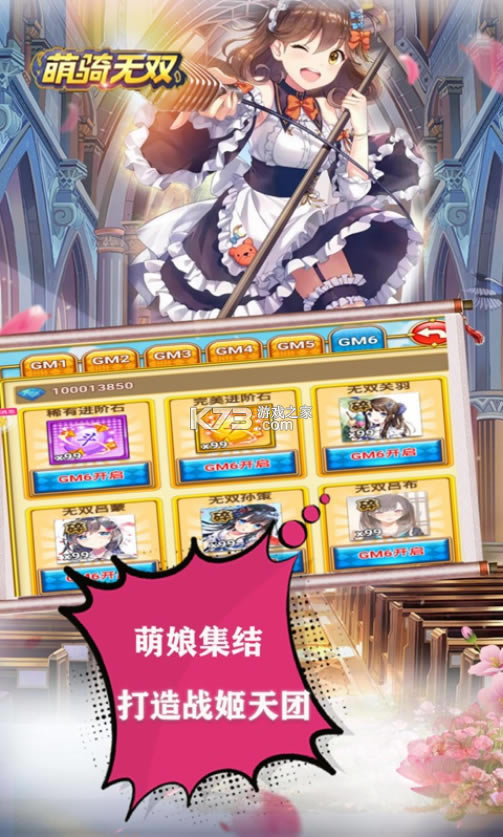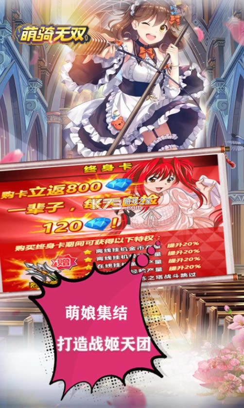 《萌骑无双》是一款女性向三国性转题材卡牌手游,游戏上线送1亿钻石、满V特权,领取平台福利和日常签到更有百万钻石赠送,不肝不氪也能玩转三国!来《萌骑无双》收集三国美女图鉴,一统版图,成就霸业。诸葛亮 司马懿 周瑜 神算军师呕心辅佐,吕布 赵云 等萌女任你挑选。更有绝世佳人小乔貂蝉垂膝相伴,完美画风让您欲罢不能。