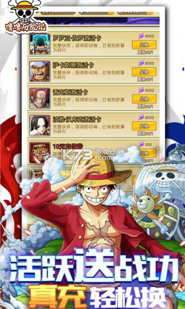 十分有趣的动漫同人题材手游,海贼王经典原著打造,天天百连抽,红卡随便玩,上线就送500连抽,还有超级会员等你领