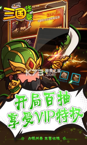 《三国华章折扣版》是一款超级好玩的卡牌类的三国手游, 背景上是设定在三国时期,你需要先召唤出武将来获得战力,体验不一样的感受,还有超多的福利等你来领取,一起在这里战争战沙场吧。