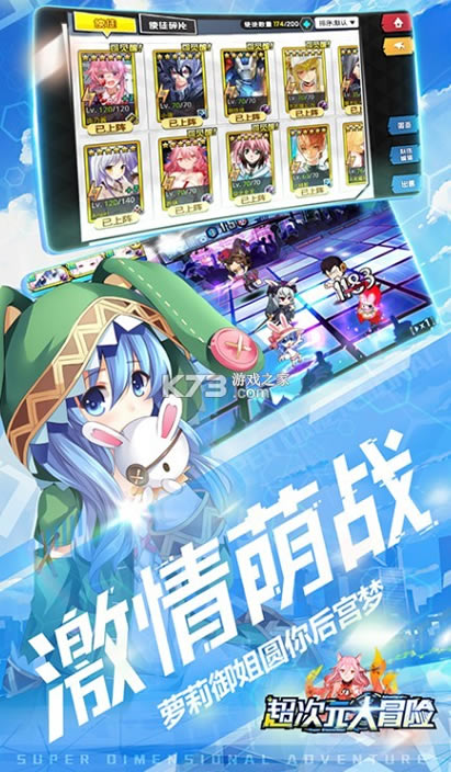 在这款游戏中,玩家不仅能组建自己的队伍,还能收集来自各种漫画电影里的人物角色! 向玩家们展示了丰富的次元元素,剧情相似不相识,画面精致优美,超次元大冒险采用Q版游戏风格构建趣味动漫世界。