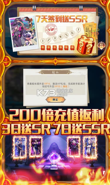 ★新游好福利,创角即送VIP16,达成航海目标直升V20+100连抽,0氪欧皇随时当大佬!
