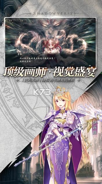 《影之诗》 (Shadowverse)是由日本Cygames公司开发的一款日式幻想题材卡牌对战手游。本游戏拥有丰富的战略、独特的进化系统、强竞技性的玩法、华丽的卡牌立绘、上百位超人气声优及原汁原味的日式幻想故事,让玩家在畅快对战同时,在日式幻想大世界中尽享视觉的饕鬄盛宴。