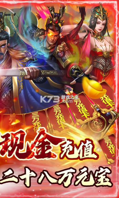 上线就送VIP20、288888元宝、2000万铜钱!登录领取5星神将关羽,每日百连抽,各类资源应有尽有!