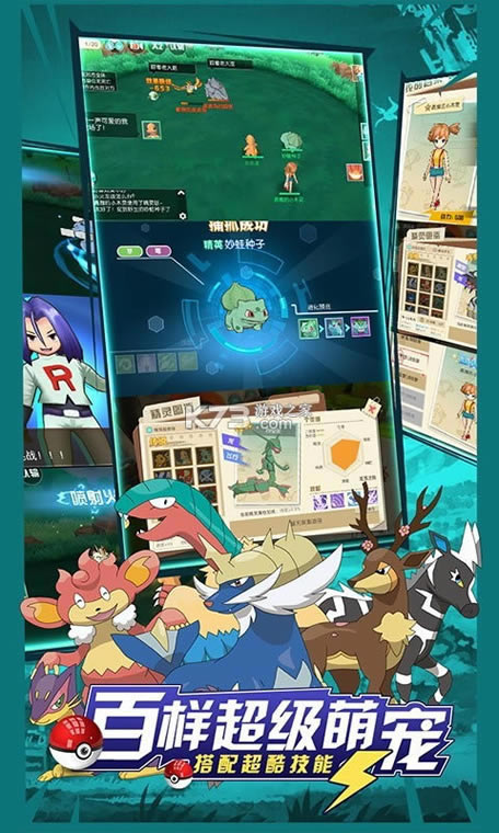 1、可爱Q萌的游戏画面,活泼灵动的口袋精灵让玩家在游戏中捕捉到熟悉又新鲜的战斗体验。