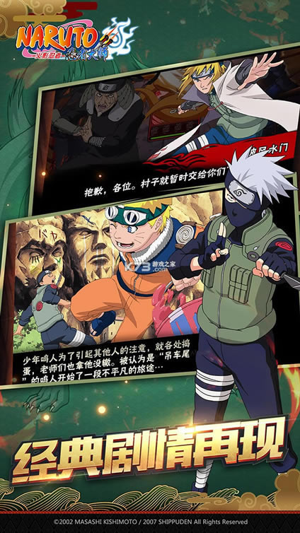 经典剧情再现 重温记忆中的感动 中忍考试、追回佐助、抓捕尾兽、五忍会议等,亲身参与其中,重温记忆中的热血与感动。
