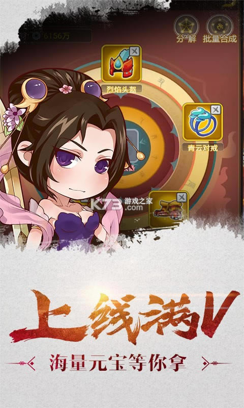 ★上线赠送满级VIP19,元宝108888、铜钱2000万,首充双倍;