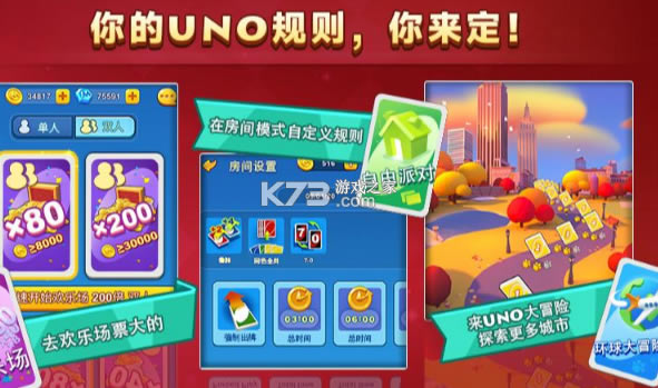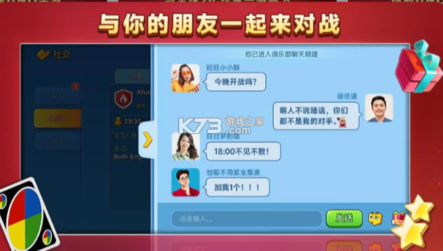 在这里,你不但可以和家人、朋友一起线上玩UNO,还能与全世界各国玩家一起玩耍!我们已经集结了全世界的UNO爱好者,前所未有的欢乐体验,就等你来玩啦!