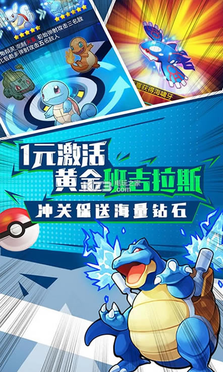 ★福利二、价值888元超值礼包仅需1元,经典御三家、小银皮肤、100%大师球!更有冲关保送海量钻石、1元黄金班吉拉斯!