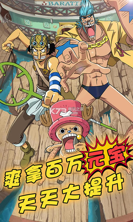 在PVP对决中占据一席之地,脱颖而出成为最强海盗王。玩家在游戏过程中,不仅是作为主角组建海盗团从而踏上强者之路,也是对《ONE PIECE》动画的经典重温。