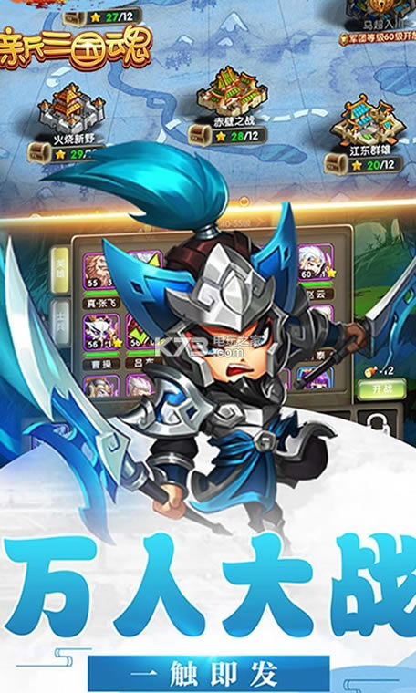 《新三国魂星耀版》是一款三国题材的卡牌策略手机游戏,它的主要特点是军团作战,横版对冲,强调布阵策略和临场技能释放,让你淋漓尽致的体验指挥千军万马的大将之风,秒杀以往枯燥乏味的自动战斗模式。玩家可以率领40来个各具特色的史诗英雄,包含几百种武将技能,指挥300名以上的单位同屏厮杀,缔造“军团对战”的史诗感。能感受到“一夫当关,万夫莫开”,“大将冲锋,如入无人之境”的爽感。游戏提供丰富的成长系统提升玩家战斗力,更有宝物道具助玩家一臂之力。
