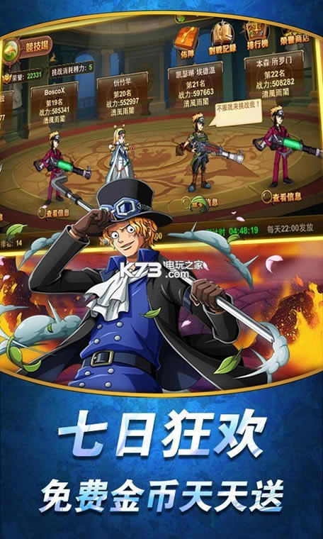 《少年勇者团星耀版》经典日漫原创大航海题材卡牌手游,游戏精致还原动画经典,原味再现顶上战争的宏大场面。上线即送VIP19,金币*30000,贝里*300w,四皇、王下七武海、海军三大将都可成为你的伙伴,伟大航路等你来征服。