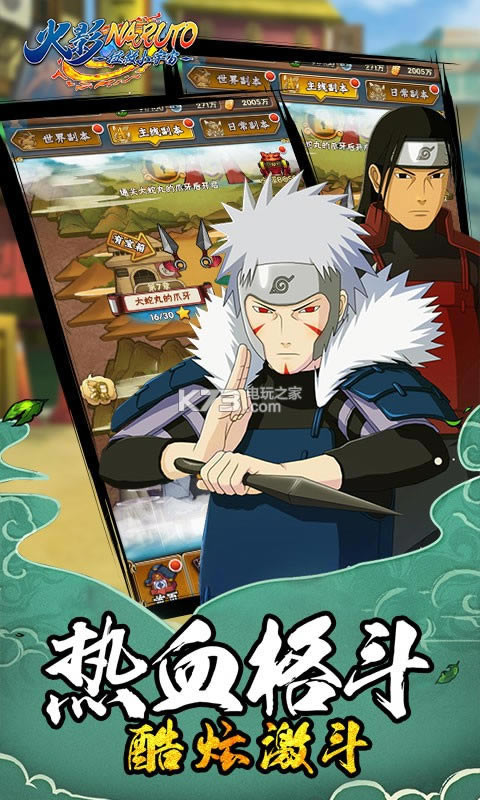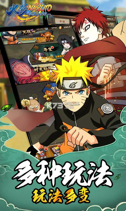 大战毁灭了世界,将忍界毁灭成了碎片,仙人们用最后的力量打开了时空之门,希望能够穿越时空改变历史; 然而时空之门出现了问题,使忍界碎片散落到世界各地,没有仙人之力保护的忍者们也被吸入时空之门,导致时空错乱;玩家扮演被吸入时空之门的忍者,游历忍界,一路上击败各色忍者,收集忍界碎片,拯救忍界! 游戏为玩家还原了一个真实的忍者世界,有着原汁原味的火影风格剧情;更有机会与各种传奇忍者同行,用成长和羁绊的力量打败强敌,成为最强忍者!