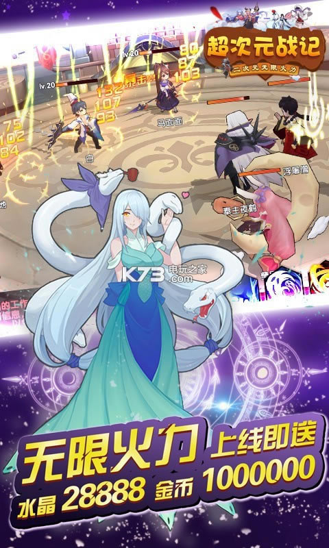 《超次元战记》是一款RPG即时制回合制动作手游,一个全新的游戏玩法,主线剧情不再消耗火力值,技能随便放,各种角色伙伴技能随便搭配,超强团控技能,爆炸输出技能,随心所欲,完美诠释PVE的爽!还有PVP活动斗智斗勇伙伴的搭配,技能互相制约,超高的活动奖励,策划都哭了!