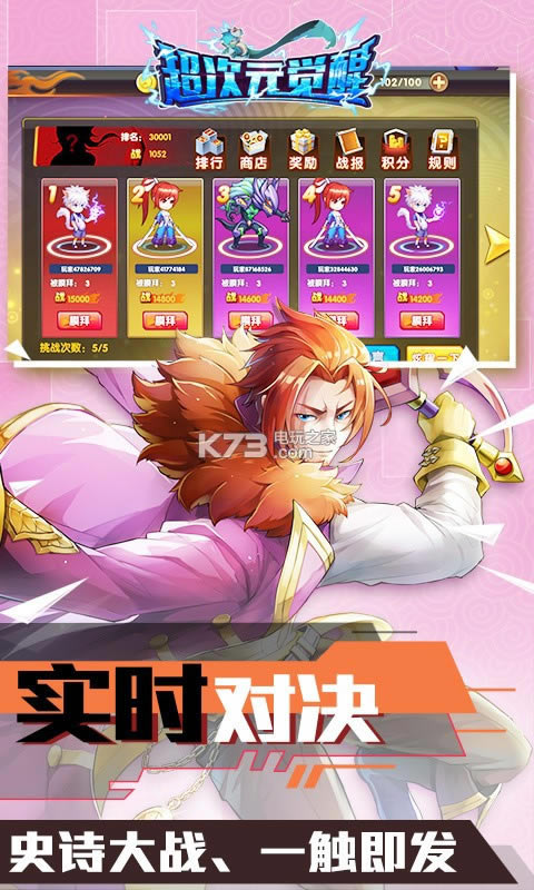 一款酷炫到爆炸的动漫英雄大乱斗游戏!在《超次元觉醒》的世界里众多经典英雄任你挑选。动作卡牌,拳拳到肉!跨服PK,实时竞技!诸多福利送不停,海量钻石免费领,极品神将送不停,只有您想不到的东西,没有我们送不了福利!!