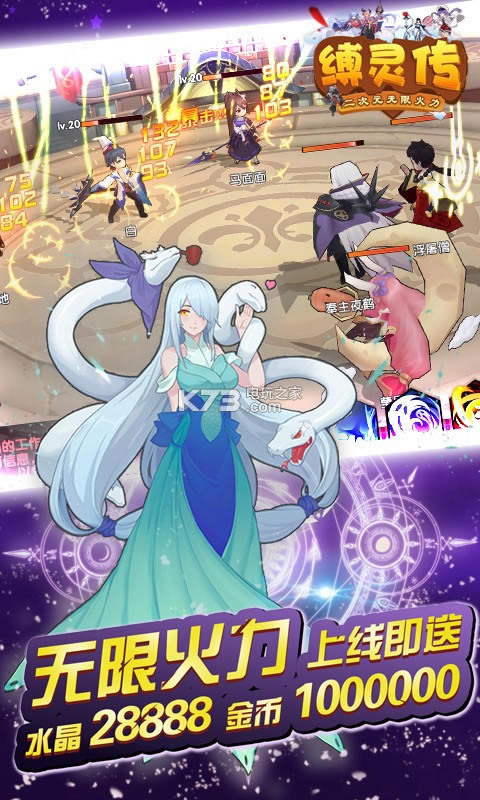 《缚灵传无限火力版》是一款RPG即时制回合制动作手游,一个全新的游戏玩法,主线剧情不再消耗火力值,技能随便放,各种角色伙伴技能随便搭配,超强团控技能,爆炸输出技能,随心所欲,完美诠释PVE的爽!还有PVP活动斗智斗勇伙伴的搭配,技能互相制约,超高的活动奖励,策划都哭了!