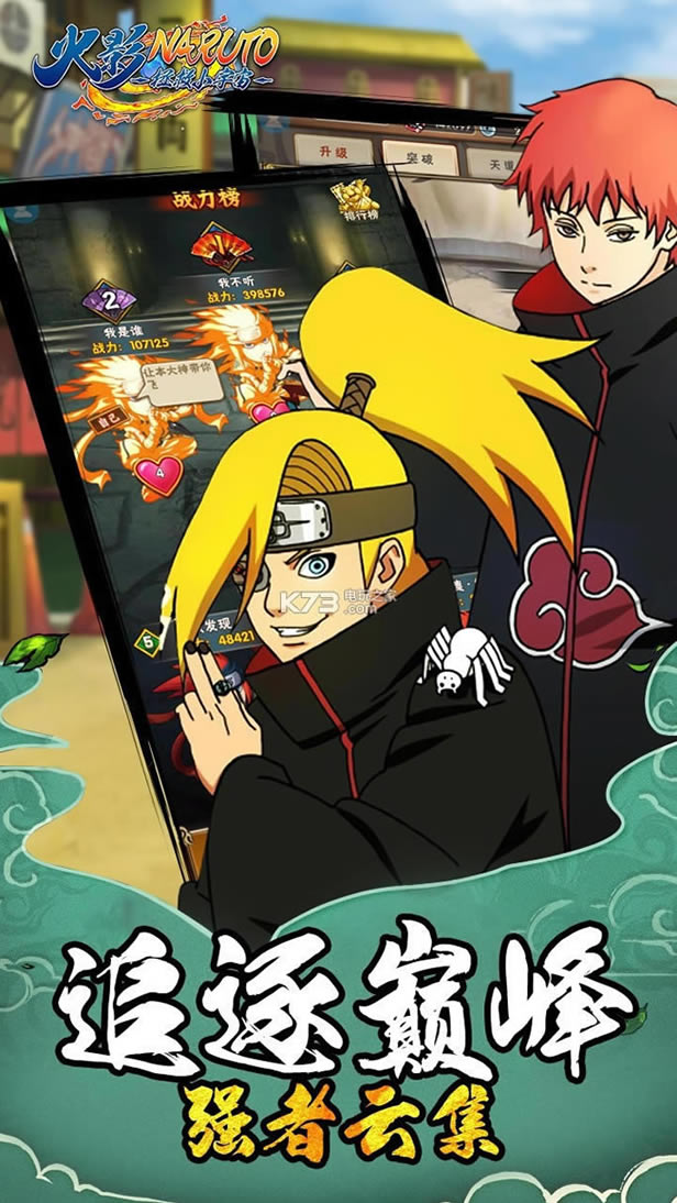 大战毁灭了世界,将忍界毁灭成了碎片,仙人们用最后的力量打开了时空之门,希望能够穿越时空改变历史; 然而时空之门出现了问题,使忍界碎片散落到世界各地,没有仙人之力保护的忍者们也被吸入时空之门,导致时空错乱;玩家扮演被吸入时空之门的忍者,游历忍界,一路上击败各色忍者,收集忍界碎片,拯救忍界! 游戏为玩家还原了一个真实的忍者世界,有着原汁原味的火影风格剧情;更有机会与各种传奇忍者同行,用成长和羁绊的力量打败强敌,成为最强忍者!