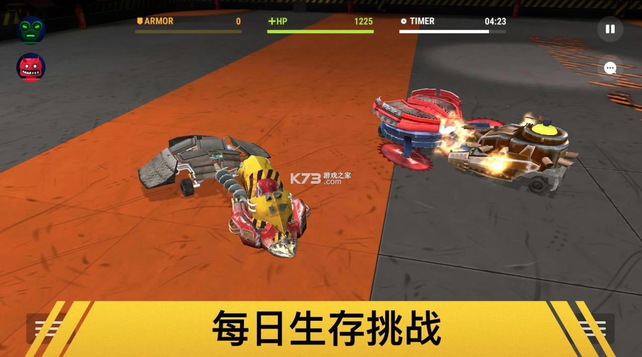 碰碰机器人2手游是一款机器人对战游戏,猛烈的格斗,让游戏更好玩儿,这里有各式各样的机器人,你能选择在其中来进行对战!在游戏里面,玩家将能够自由打造属于自己的个性战斗机器人,为自己的机器人装上各种各样强大的作战武器,配搭上超性能卓越的告知电机,在比较有限的竞技场中狂奔,在需要的适合给对手来上强烈一击,真是爽爆有么有!碰碰机器人2手游,猛烈的格斗场景,真实的撞击磨擦效果,让机器人之间的对决更加真实,这里有各式各样的机器人,赶紧来选择一个,参加刺激的对战吧!玩家能够选择并改装你的战斗机器人,你需要不断击败敌人,得到比赛的最后获胜,游戏还支持多人大战模式,十分刺激。