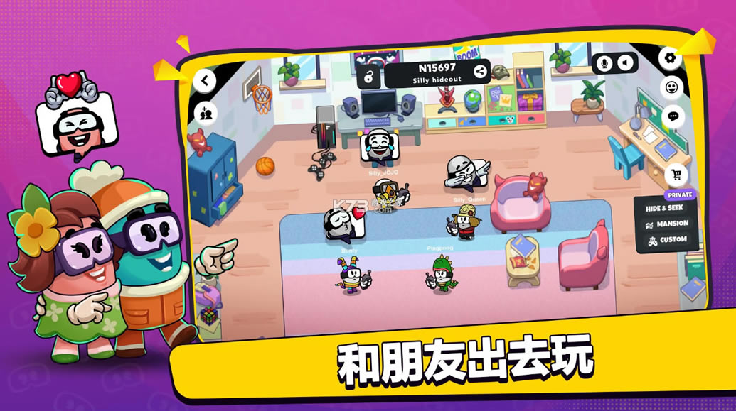 谁小时候没有玩过捉迷藏?如果你没有,来试一下!我们将把捉迷藏加入到Silly皇室当中,最棒的一点是我们都已经知道了规则。作为一个Silly,你必须找到一个地方藏起来,确保魔鬼不会抓到你。作为魔鬼,要确保你能抓到地图上的每一个Silly! 听起来很有趣?邀请你的朋友们,马上开始吧。