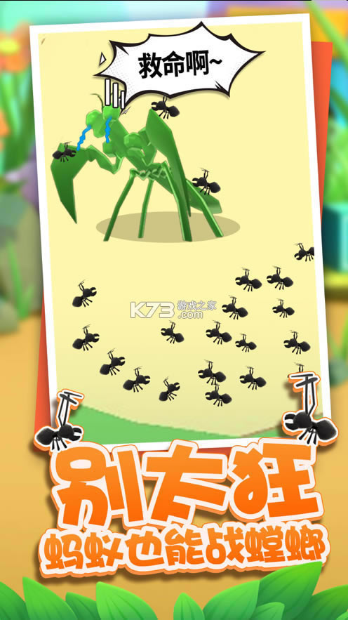 众所周知,无论是任何物种“弱肉强食”便是自然界最基础的生态法则,那么你是否好奇过真正的动物世界战争是怎样的呢?今日就为大家带来了是虫虫冲冲冲,一款以昆虫视觉玩法所展开的动物模拟类策略战争小游戏。同时该游戏不仅题材新颖、整体画面设计动物呆萌、场景高清细腻,搭配着数百道精心设计的关卡吸引了一众网友的关注和喜爱。更重要的是其操作玩法简单好上手,玩家不但可以在游戏中享受着非常自由的探索模式,通过召集、或者合并等方式获得更加厉害的昆虫战士,丰富属于你的军团成员。也可以控制自己的虫子去进行战斗,去进行挑战各种难度任务,并且其中每一个昆虫斗士都拥有自己的独特属性,都能发挥决定作用,从而帮助你展开一场指尖畅爽的生存和资源争夺吗冒险之旅,带领你成为蚂蚁王国的首领,守护你的“汉堡”!