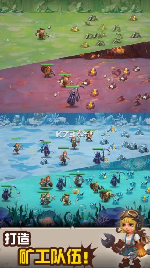 游戏有着简单无脑的操作玩法模式,轻松愉快的操作挑战率领着自己的矿工展开一场激烈的对抗