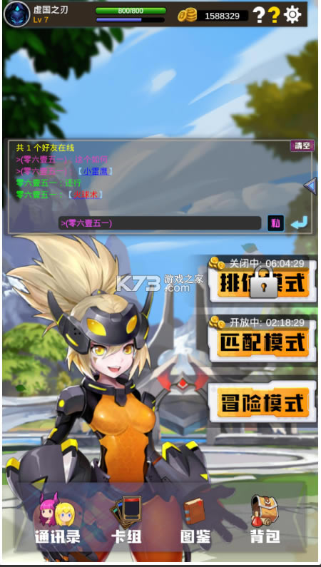 虚国是一款多人竞技的卡牌游戏,以二次元画风为特色,冒险内容丰富多样,新颖并且趣味性十足,玩家可以根据游戏规则收集属于自己的二次元人物,与自己喜欢的二次元人物进行游戏中的并肩作战,在这里体验无尽的冒险带来的愉悦之感。喜欢二次元喜欢冒险的你,怎能错过这款制作精良的游戏呢,赶快来下载吧。
