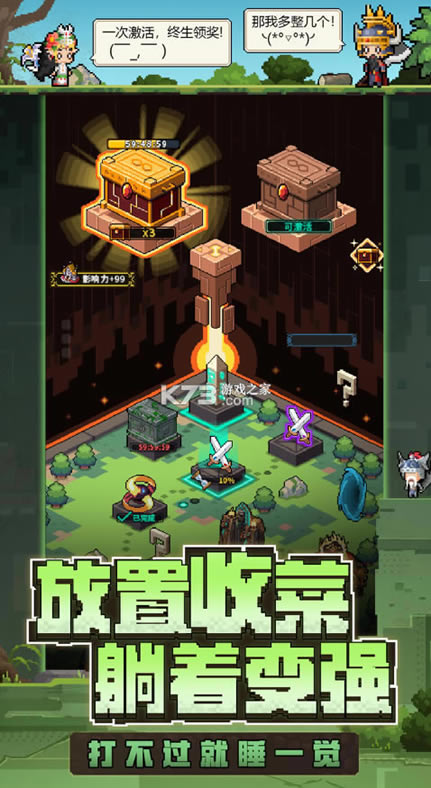 《冒险与深渊》是一款像素风冒险放置手游,经典冒险题材,融合模拟经营元素,轻度策略的战斗搭配、公会战玩法为玩家搭建一个庞大而充满想象力的冒险大世界。百层深渊、各次元IP角色乱斗,还可随心所欲自由DIY主城,与公会伙伴一起出征星辰大海,成为四海霸主!
