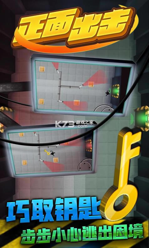 正面出击介绍是一款益智休闲类的游戏,通过操控游戏主角来躲避灯光的照射,去获取钥匙打开通往下一关的大门,通过则顺利闯关成功。如果被灯光照射到,游戏则失败,一路都是箱子路障,需要身体不接触路障通过,充满刺激的小游戏,发掘自己的创新与创造能力,不断提升自己的思路。通过闯关,一直通向成功之路!加油吧!勇者!