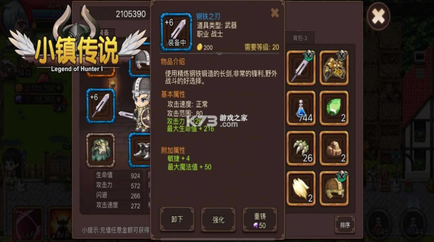 《小镇传说游戏》一款经典的ARPG冒险动作闯关游戏,魔幻的世界,丰富的剧情,玩家将在这里继续你的传奇,拿起你的武器,开荒拓土,打败敌人收集物资,强化自己的武器。